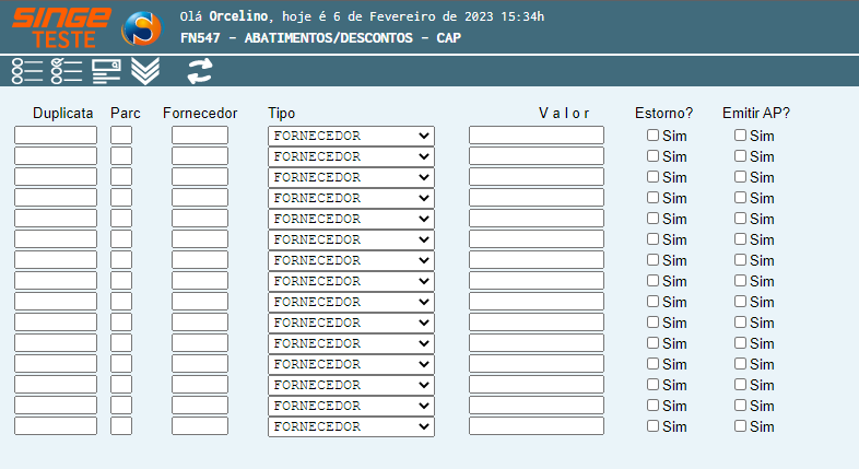 📌 Tela FN547 – Abatimentos/Descontos - CAP
