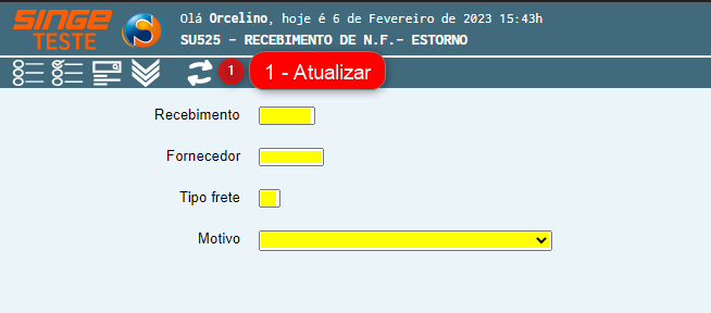 Figura 2: Tela SU525 – Recebimento de Nota Fiscal – Estorno