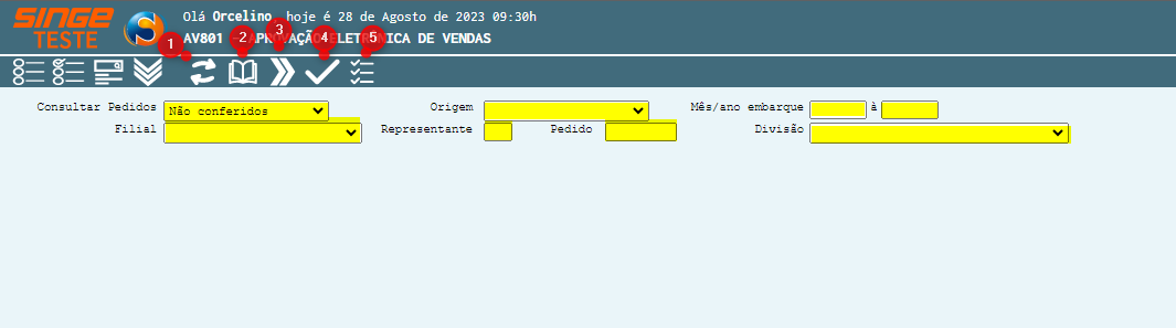 Após informar ao menos o campo Consultar Pedidos, basta clicar sobre o ícone Consultar