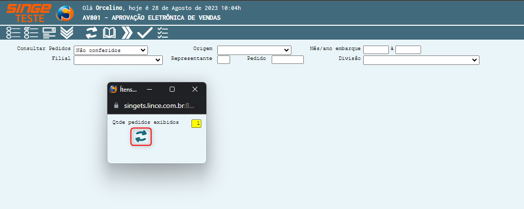 Figura 2: Tela AV801 Aprovação Eletrônica de Vendas