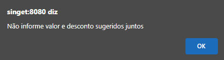 Não pode-se utilizar o campo de porcentagem e valor em reais juntos, apenas um ou outro, ao tentar utilizar ambos, será apresentada uma mensagem impedindo o processo.