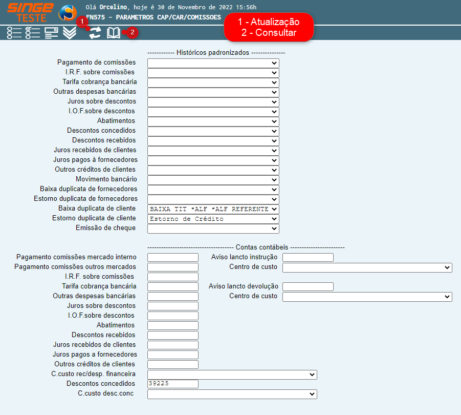 · Centro de custo desconto concedido: Campo formato lista, com os centros de custos cadastrados previamente