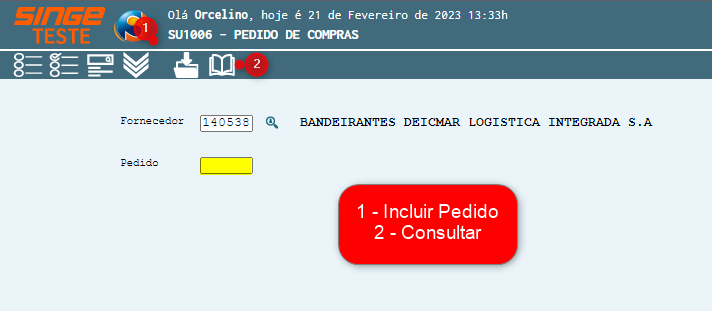 Também é possível incluir um novo pedido, clicando sobre o ícone Incluir
