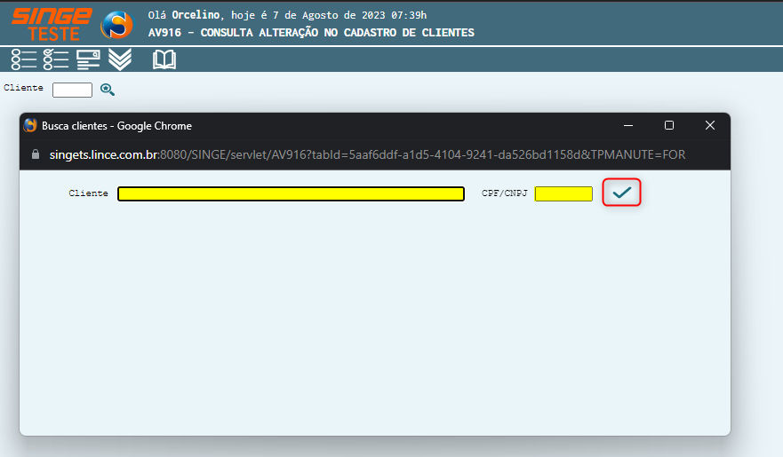 Uma nova guia será exibida para que a pesquisa de um cliente, possa ser realizada.