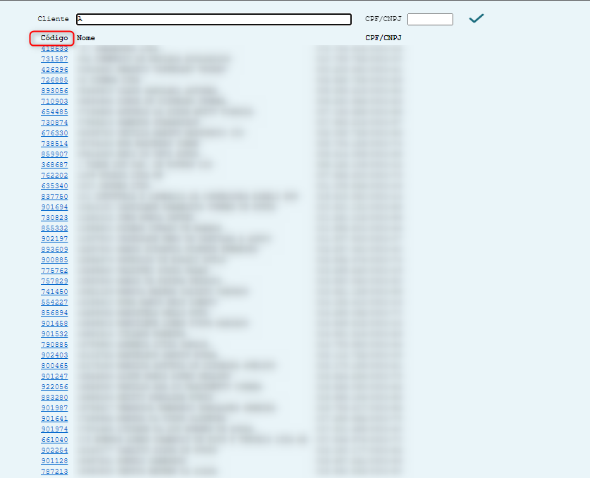 · Caso não tenha o código do cliente em mãos, basta clicar sobre o ícone Pesquisar Cliente