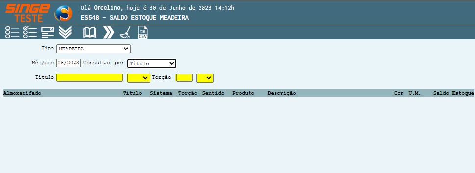 Figura 3: Tela ES548 – Saldo Estoque Meadeira