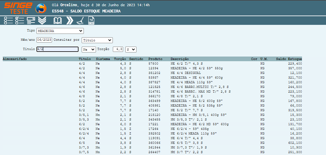 Figura 4: Tela ES548 – Saldo Estoque Meadeira