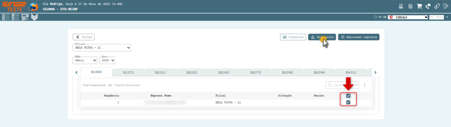 Este procedimento tem como objetivo exemplificar como efetuar a consulta, inclusão, atualização e transmissão de dados relacionados ao EFD REINF, bem como acompanhar os status dentro de suas filiais e dar baixa nas informações dos contribuintes.