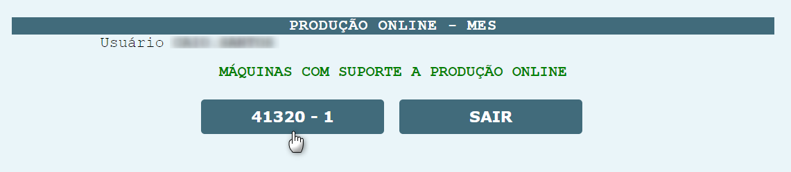 Clicando sobre o número da máquina, o sistema será redirecionado para a opção Iniciar Produção.